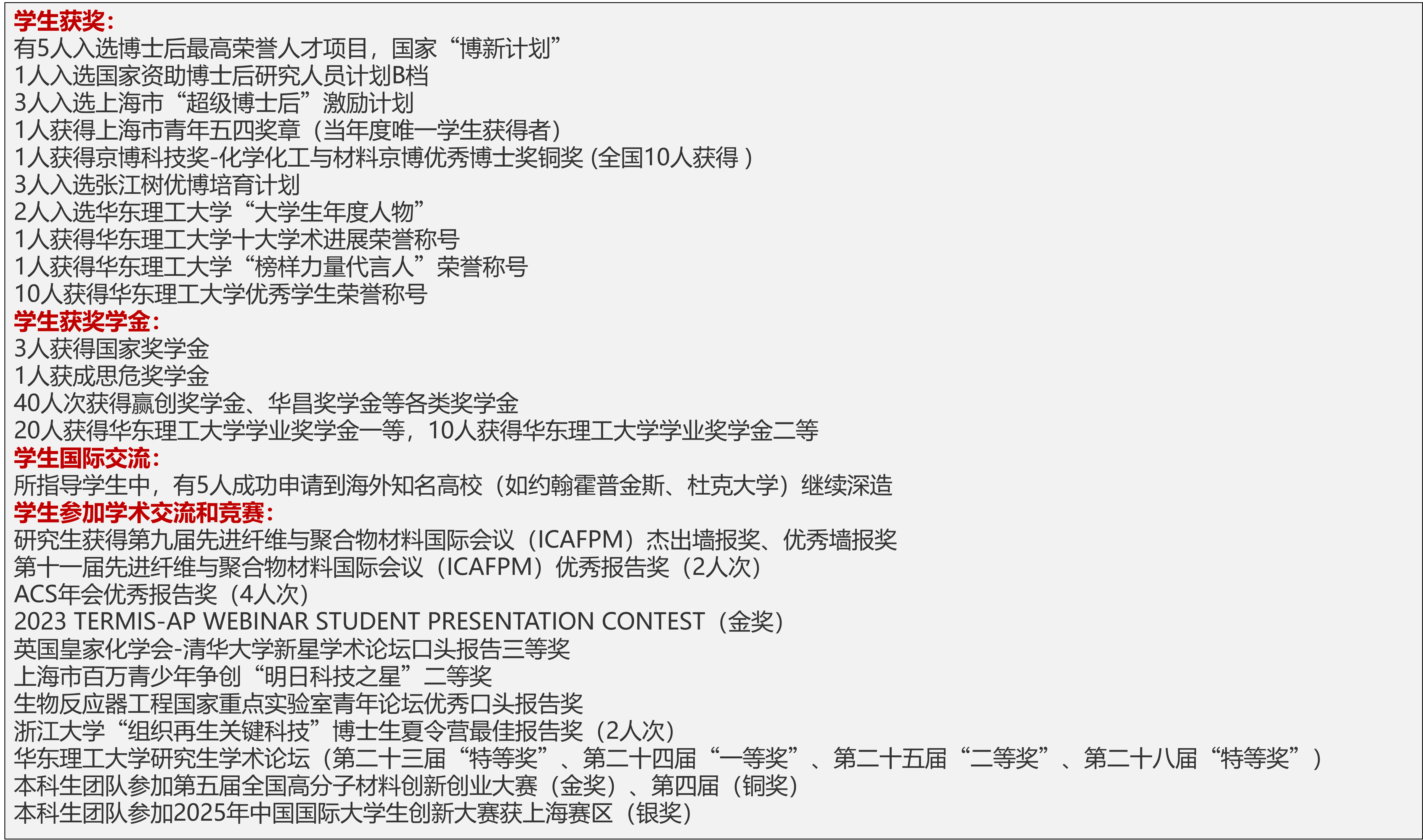 研究方向:细胞黏附、细胞-生物材料相互作用研究、干细胞功能调控及体内递送治疗