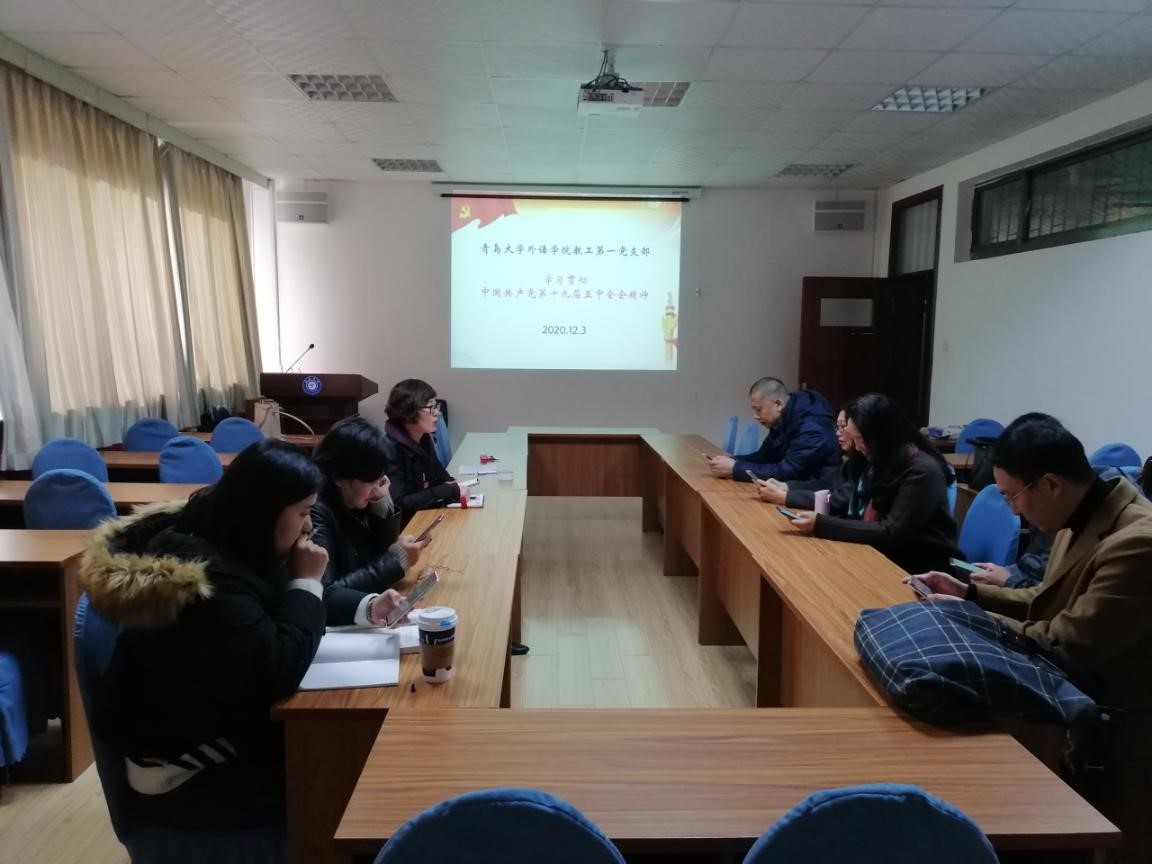 2020年12月3日,Beat365唯一官方网站教工第一党支部在博文楼312会议室召开主题党日活动,活动主题为学习贯彻中国共产党第十九届五中全会精神,并围绕“课程思政面对面”主题进行专题大讨论。会议由教工第一党支部书记王薇主持,Beat365唯一官方网站教工第一党支部党员参加此次会议。