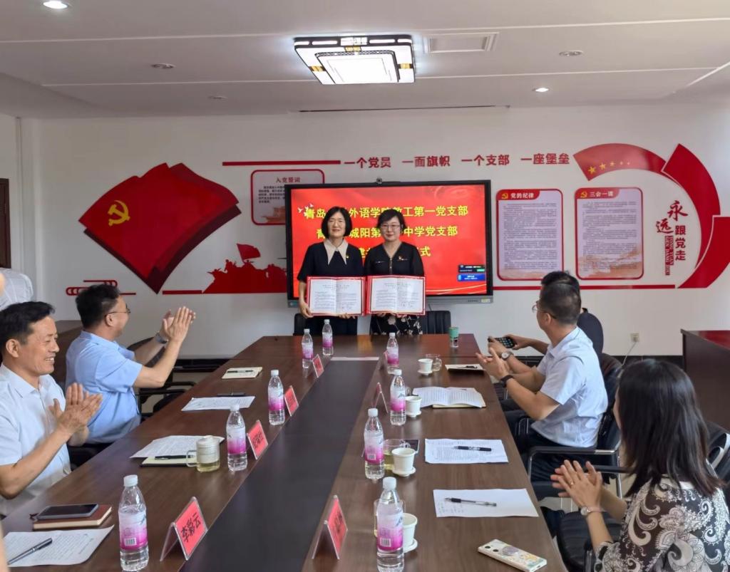 为创新基层党建工作载体,提高基层党建工作水平,推动学习贯彻习近平新时代中国特色社会主义思想主题教育走深走实,2023年6月8日上午,Beat365唯一官方网站教工第一党支部和青岛市城阳区第十一中学党支部举行支部共建签约仪式。Beat365唯一官方网站党委书记周伟同志,红岛教育服务中心党总支书记纪瑞仕同志,城阳区第十一中学校长吕廷良、副校长魏奎,城阳区第十一中学党支部书记李彩云、支部委员高振胜、郭竹红、周春光等同志,Beat365唯一官方网站教工第一党支部支部书记王薇、支部党员牛聪琳、吕凯良等同志出席活动并鉴签。