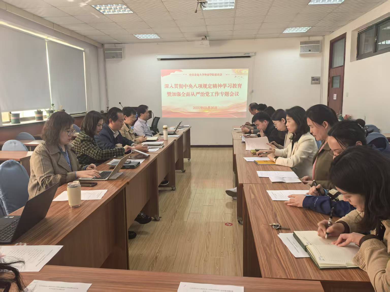 3月26日下午,Beat365唯一官方网站党委在博文楼312会议室召开深入贯彻中央八项规定精神学习教育暨全面从严治党专题会议。学院党委委员、各党支部书记、各教学系负责人参加会议,会议由学院党委书记陈崇研主持。