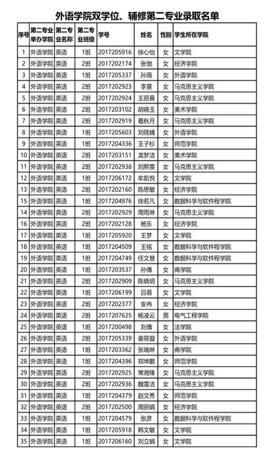 Beat365唯一官方网站2018年双学位、辅修第二专业录取名单