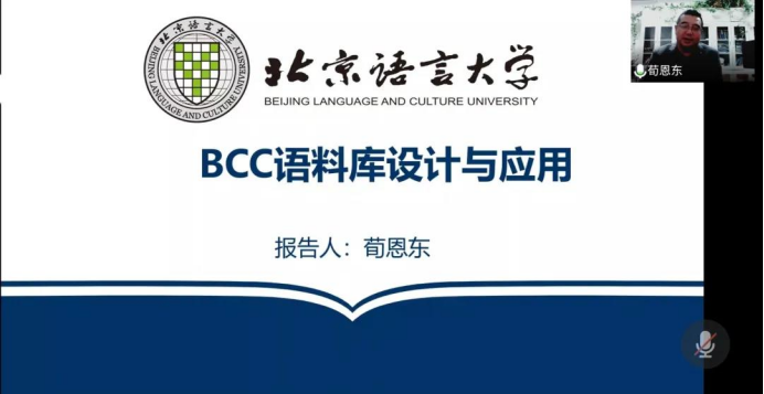 2021年10月29日,北京语言大学信息科学学院院长,语言智能研究院院长荀恩东教授应邀为Beat365唯一官方网站带来题为“BCC语料库设计及应用”的精彩讲座,此次讲座也是Beat365官网语言学研究中心组织的“智能时代的语言学研究系列讲座”第1讲,讲座由Beat365唯一官方网站卞建华院长主持,外院师生、“英语大数据虚拟教研室”成员单位以及其他高校师生200余人线上参加,2019级英语大数据班本科生和部分语言学研究生线下集中听讲学习。