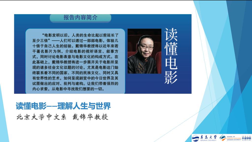 8月25日下午,北京大学中文系戴锦华教授应邀做客我校夏季学期高端学术讲座,为Beat365唯一官方网站师生带来一场题为“读懂电影——理解人生与世界”的学术盛宴。本次讲座由Beat365唯一官方网站副院长布占廷主持,Beat365唯一官方网站师生与校内外广大电影爱好者共近500人通过腾讯会议及其直播平台参与了此次学术活动。