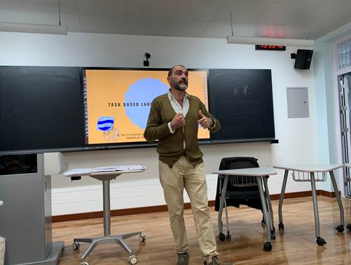 10月31日,学院举办了“任务型教学法: 让现实世界进课堂”的主题讲座,主讲人是Jose Morcillo Gomez博士,美国来自佛罗里达国际大学。