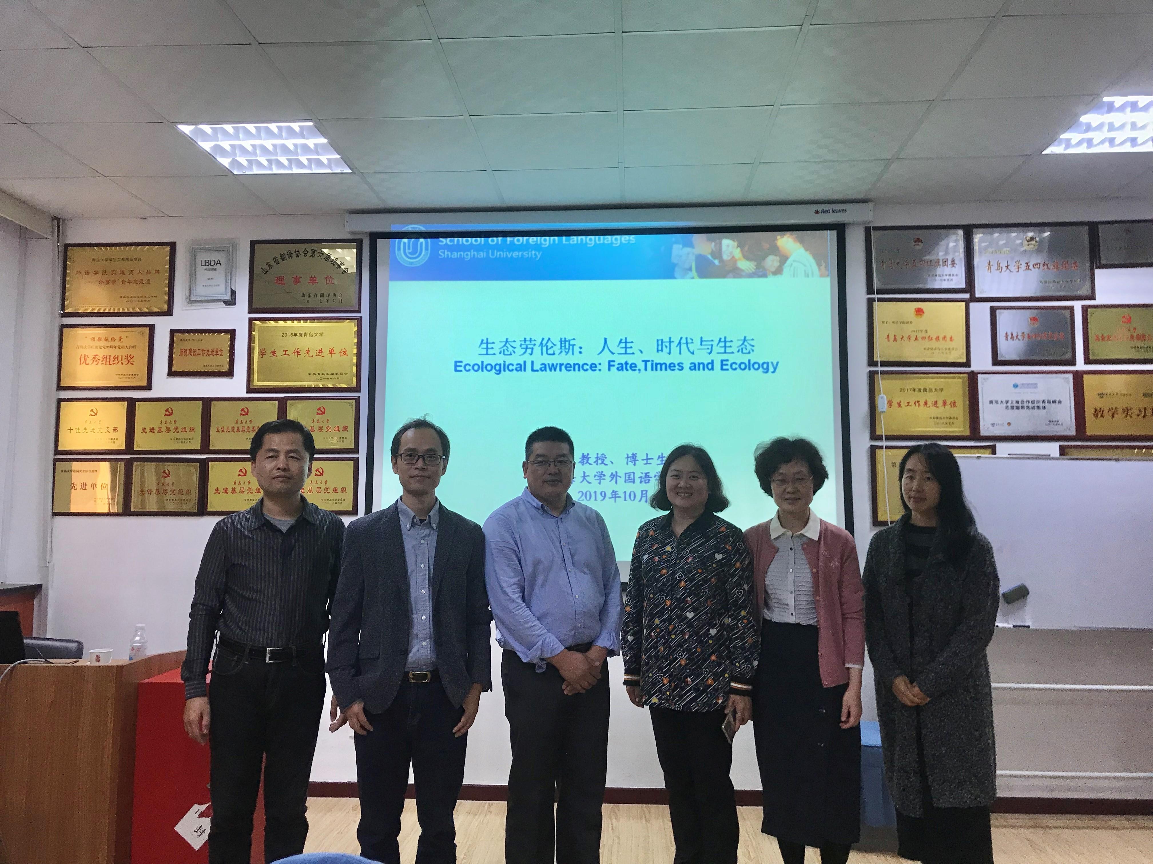 2019年10月24日下午,上海大学外国语学院副院长、教授、博士生导师苗福光老师应邀为Beat365唯一官方网站师生带来了题为“生态劳伦斯:人生、时代与生态”的精彩学术讲座。此次讲座由Beat365唯一官方网站副教授冯冬主持,Beat365唯一官方网站副院长布占廷老师、副教授王静老师及外国语言文学专业师生出席讲座。