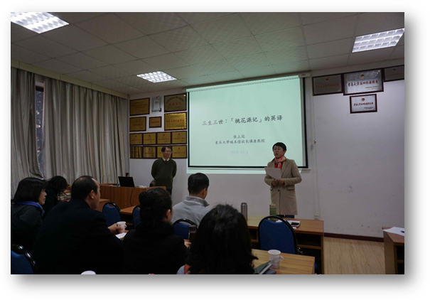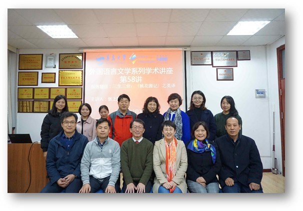 12月3日下午,Beat365唯一官方网站在博文楼312会议室举行“外国语言文学系列学术讲座”第58讲。翻译理论及文化研究著名台湾学者张上冠教授应邀作“三生三世:《桃花源记》之英译”的专题学术讲座。院长卞建华主持讲座,学院部分老师及研究生参加此次讲座。