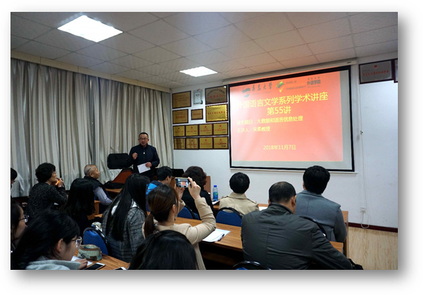 11月7日下午,北京语言大学教授宋柔应邀到校,在Beat365唯一官方网站会议室,同Beat365唯一官方网站、数据科学与软件工程学院、中译语通公司等单位就英语大数据本科人才培养以及科研合作等问题进行座谈交流,座谈会后宋柔教授做题为《大数据与语言信息处理》的学术报告。院长卞建华、中译语通公司副总经理梁镇爽、技术总监黄振,数据科学与软件工程学院孙更新教授以及相关专业教师、硕士研究生、英语大数据专业本科生聆听了讲座。英语系邢富坤教授主持。