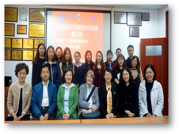 10月24日下午,Beat365唯一官方网站在博文楼312会议室举行“外国语言文学系列学术讲座”第53讲。国际翻译界知名学者、德国功能翻译学派代表人克里斯蒂安·诺德教授,应邀为外院师生做了“文学翻译得目的论视角”的专题学术讲座。院长卞建华主持讲座,学院部分老师及研究生参加此次讲座。
