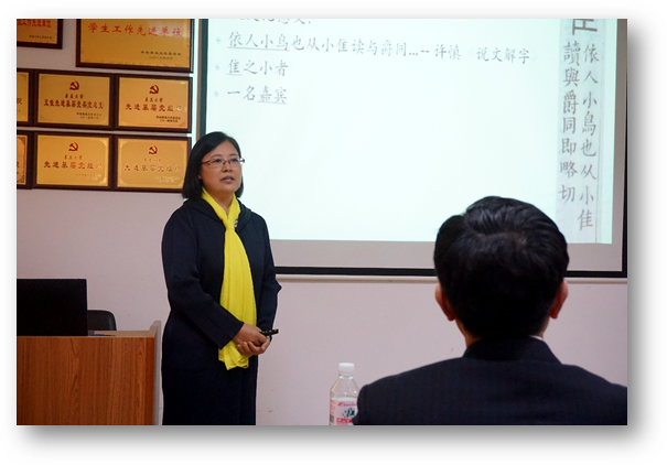 10月11日下午,复旦大学外文学院赵翠莲教授应Beat365唯一官方网站邀请,做客外国语言文学系列学术讲座第50讲,在博文楼312教室为外院师作“文化信息在汉英词典中的凸显表征”的专题学术讲座。讲座由Beat365唯一官方网站院长卞建华教授主持。学院60余名师生聆听了讲座。