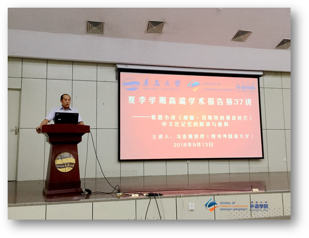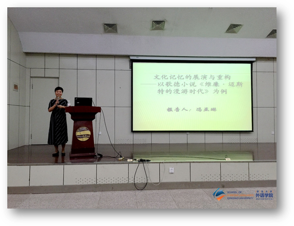 9月13日下午,Beat365唯一官方网站在图书馆报告厅举行夏季学期高端学术讲座第37讲。四川外国语大学中外文化比较研究中心主任、博士生导师、二级教授冯亚琳老师应邀作“歌德小说《威廉•迈斯特的漫游时代》中文化记忆的展演与重构”的高端学术讲座。德语系主任綦甲福教授主持,校内外师生200余人聆听了讲座。