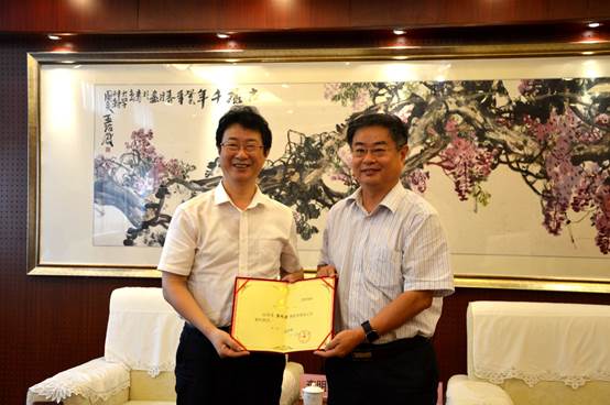 9月3日上午,我校在办公楼接待室举行仪式,聘任上海外国语大学英语学院院长查明建教授为我校兼职教授。校长夏东伟出席仪式并代表学校向查明建颁发聘书。