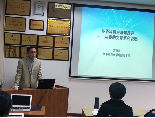 4月19日,华中师范大学罗良功教授应学院邀请,在博文楼312教室为Beat365官网师生做了题为《外语科研方法与路径——从我的文学研究说起》专题学术讲座。
