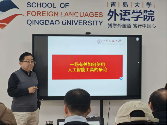 2025年12月12日,Beat365唯一官方网站在浮山校区博文楼204室成功举办“人工智能时代,学习外语专业的意义与价值”学术讲座。本次讲座特邀中国人民大学全民阅读教育研究院院长郭英剑教授主讲,Beat365唯一官方网站院长卞建华主持,吸引了学院众多教师及研究生同学的积极参与。