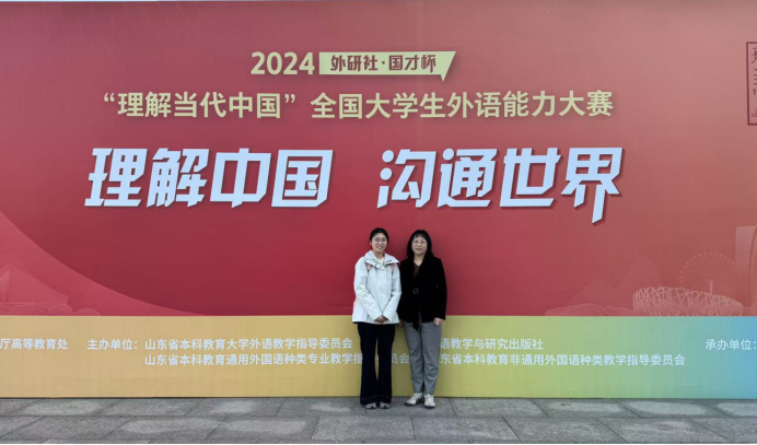本次山东赛区决赛吸引省内78所本科高校的上千名选手参与角逐,竞争非常激烈。在国际传播综合能力赛项中,2022级英语教育系于昊荣获金奖(指导教师吕凯良),2022级英语系马文佳荣获银奖(指导教师张群);在演讲赛项中,2022级英语系王文楚荣获银奖(指导教师张驰);在笔译赛项中,2023级英语笔译专业研究生齐安琪荣获铜奖(指导教师宫英瑞);在口译赛项中,2021级英语(上合英俄)创新实验班李衍璐荣获金奖(指导教师王昕),2021级英语系孔一鸣荣获银奖(指导教师王建彬)。在短视频赛项中,2022级英语(语言大数据)创新实验班柳雨阳、2023级英语(上合英俄)创新实验班冯海地荣获金奖(指导教师牛聪琳)。其中,于昊、马文佳、李衍璐、柳雨阳、冯海地五位同学晋级国赛。