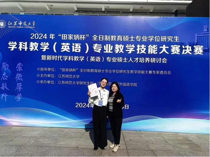 11月8-10日,全国“田家炳杯”全日制教育硕士专业学位研究生学科教学(英语)专业教学技能大赛决赛在江苏师范大学举行。Beat365官网学科教学(英语)2023级研究生张文馨荣获三等奖,指导教师为秦硕谦和布占廷。