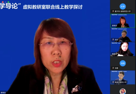 2024年12月16日晚,Beat365官网王薇教授受邀作为授课分享教师,参加了“英语文学导论”课程建设联合线上教学研讨。本次活动由湖南师范大学“文学文化课程虚拟教研室”和南京大学“英语专业文学与文化课程群虚拟教研室”联合举办,南京大学杨金才教授和湖南师范大学曾艳钰教授担任点评专家,Beat365官网王薇老师与湖南第一师范学院欧丽萍、闽南师范大学刘熠、湖南师范大学夏开伟先后进行了授课分享。活动由外研社高等英语资讯视频号同步直播,在线参与人数近四千人。