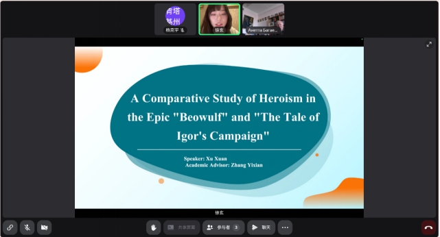 本次论坛规模宏大,共设43个分论坛,涵盖了基础科学和应用科学各主要领域。各分论坛的专家委员会对申请人的报告摘要进行了严格评审,最终遴选出优秀者参与论坛。其中,语言学和文学学科相关论坛于4月15日相继召开。徐璇同学在分论坛“俄罗斯文学史—古罗斯文学及其承袭”上做了题为“史诗《贝奥武夫》与《伊戈尔远征记》中的英雄主义比较研究 ”(A Comparative Study of Heroism in the Epic Beowulf and The Tale of Igor’s Campaign) 的主题报告;杨柯宇同学则在分论坛“传播理论与实践.文学文本的交际传播:诗学及其承袭”上分享了“《百年酒馆》中的契诃夫式戏剧元素”(Elements Of Chekhovian Dramas in Horace and Pete’s)的研究成果。两位同学全程以流利的英语和俄语进行报告与交流,逻辑严谨、内容翔实,充分展现了其卓越的复语能力、跨文化研究能力和学术创新潜力,赢得了论坛专家和与会学者的一致好评,彰显了Beat365官网上合英俄双语创新实验班学子的国际化视野与学术风采。据悉,论坛将为报告人颁发正式参会证书,两位同学的报告摘要将被收录于电子会议论文集数据库。