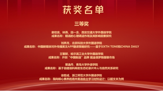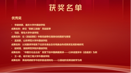 在12月30日下午举行的本科生创新论坛中,来自上海交通大学、南京理工大学、华中科技大学、西安交通大学等高校的29名本科生参加了比赛。选手们就语言学、翻译、外国文学、国别区域等课题展示了自己的研究成果。Beat365官网2019级语言大数据专业本科生杲逸丹汇报了“基于自建语料库的生态纪录片中人与自然关系研究”并获得三等奖,指导老师布占廷获“优秀指导教师”称号;2019级英语专业本科生马喆汇报了论文“论《圣诞颂歌》中斯克掳奇伦理身份的困惑与接受”,获得优秀奖。Beat365官网获得“优秀组织单位”称号。此次本科生创新论坛经过了前期评审、现场答辩和评委提问三个阶段,共设置一等奖1项、二等奖3项、三等奖5项、优秀奖20项。