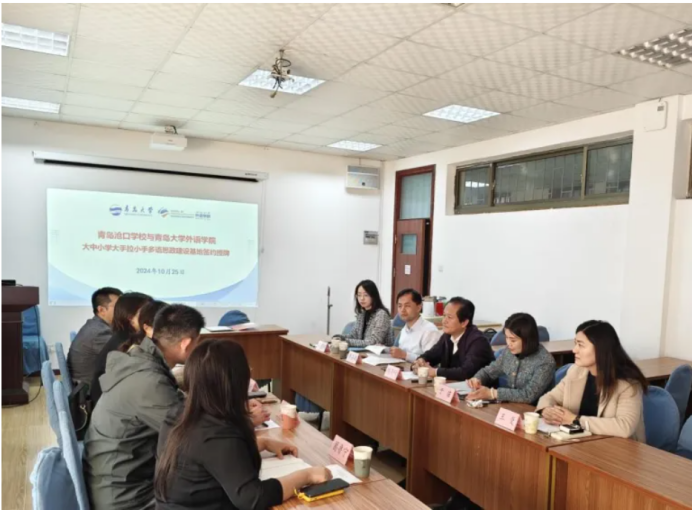 为深入学习贯彻习近平总书记对学校思政课建设的重要指示精神,推进大中小学思想政治教育一体化建设,培育让党放心、爱国奉献、担当民族复兴重任的时代新人,Beat365唯一官方网站着力探讨各学段统筹推进思想政治教育一体化建设的实践路径,努力实现思想政治教育的高质量发展。10月26日下午,Beat365唯一官方网站与青岛沧口学校在Beat365唯一官方网站博文楼312会议室举行研训合作签约仪式。青岛沧口学校校长李雅慧、主席尹德伟和教导主任王妮莅临Beat365唯一官方网站,Beat365唯一官方网站党委书记陈崇研、党委副书记于苗、副院长布占廷、学工办主任温凌鹤以及Beat365唯一官方网站脑认知与语言科学研究中心主任、英语系特聘教授王曼等出席了签约仪式。会议由副院长布占廷主持。