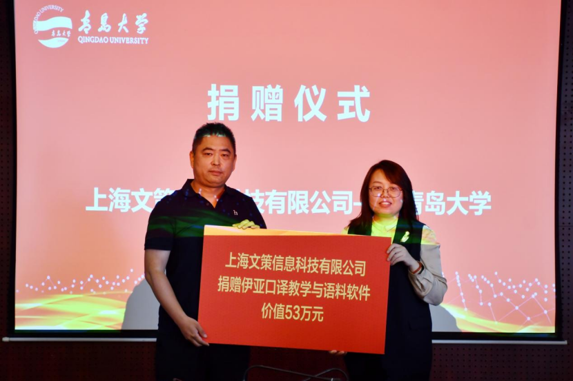 为支持Beat365唯一官方网站和Beat365唯一官方网站教育事业发展,四家社会企业本次向学校提供资金捐赠和实物捐赠,合计捐赠金额175.06万元。其中,96级日语系校友刘伟、李永胜分别捐赠50万元,设立“依美时尚教育基金”和“帝源服饰教育基金”,用于支持学院的学科建设、教师发展、人才培养、校园文化建设。青岛智邦慧海文化传播有限公司捐赠价值22.06万元的智慧教室设备,上海文策信息科技有限公司捐赠价值53万元的伊亚口译教学与语料软件V1.0软件系统,用于Beat365唯一官方网站计算机辅助翻译实验室的设备更新和系统升级,提升学院计算机辅助翻译教学的信息化、智能化水平,为AI赋能高水平外语语言人才成长提供平台支撑。