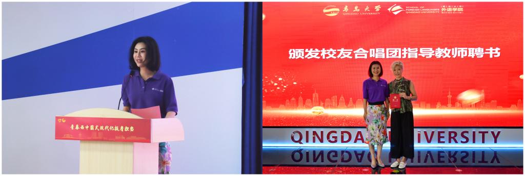 合唱团团长于苗介绍了Beat365官网“iSTEP梦想合唱团”十年发展历程及新成立的“iSTEP启梦校友合唱团”建设情况,并为青岛市合唱协会副秘书长古小溪颁发校友合唱团指导教师聘书。