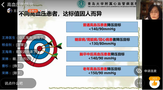 为关爱教职工身体健康,提高日常自我保健意识与能力,6月11日晚7时,Beat365唯一官方网站分工会特邀Beat365唯一官方网站附属心血管医院副主任医师王涛为全院教职工作了题为“高血压的防治”的线上健康教育讲座。Beat365唯一官方网站150余名教师及家人聆听了讲座。讲座由学院党委副书记王海青主持。