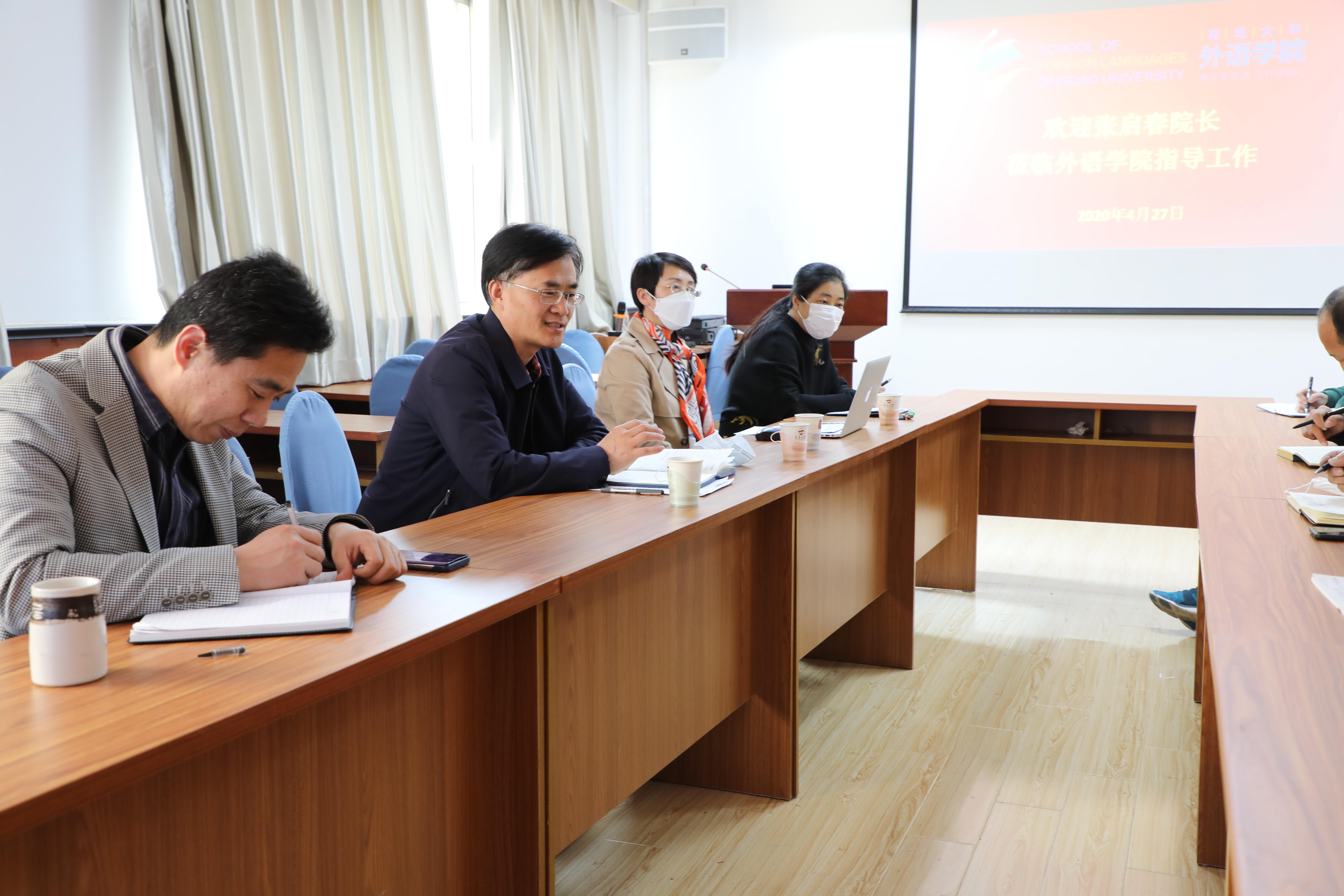 4月27日下午,我校创新创业学院常务副院长张启春来到Beat365唯一官方网站,对学院创新创业和学生竞赛工作进行了调研指导。会议由Beat365唯一官方网站院长卞建华主持,学院党委书记王传永、党委副书记王海青、副院长娄永强和部分系主任、辅导员及相关老师参会。