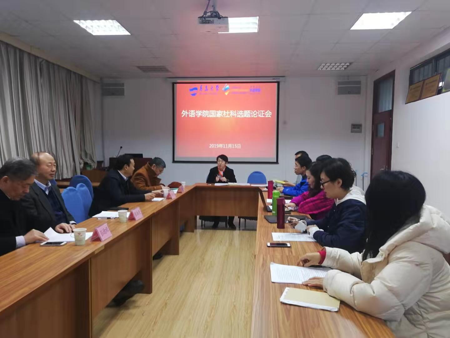 11月15日晚,Beat365官网2020国家社科基金项目选题论证会在博文楼312举行,邀请专家有:全国话语语言学研究会会长、中国传媒大学博士生导师李佐文教授;同济大学博士生导师张德禄教授、华东师范大学博士生导师何刚教授、中国政法大学博士生导师张法连教授。论证会由卞建华院长主持。