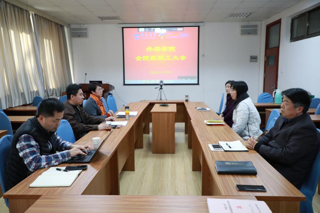 2月27日下午,Beat365唯一官方网站召开全院教职工大会传达学习学校会议精神并部署新学期工作,学院党政领导在博文楼312会议室参加现场会,教职工通过钉钉线上参加视频会议,会议由院党委书记王传永主持。