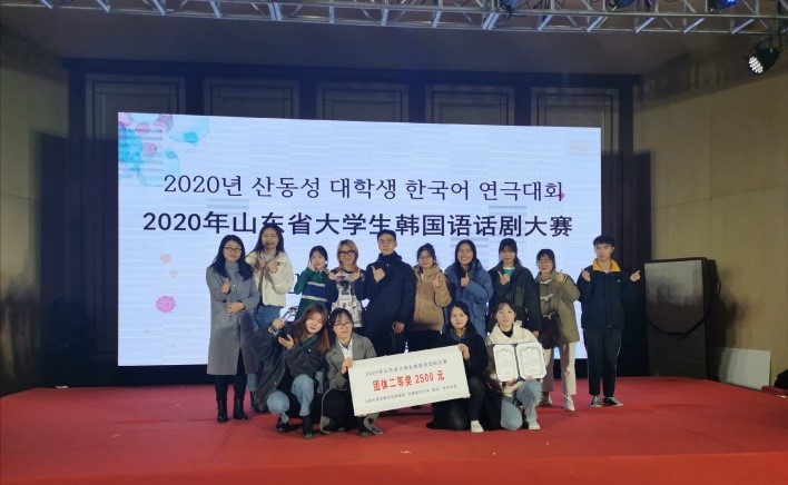 11月29日,由韩国驻青岛总领事馆、中国海洋大学共同主办的2020年山东省大学生韩国语话剧大赛落下帷幕。我校参赛队伍在朝鲜语系沈海兰、刘真儿、刘荣男老师的带领下参加了此次话剧大赛,并荣获二等奖。