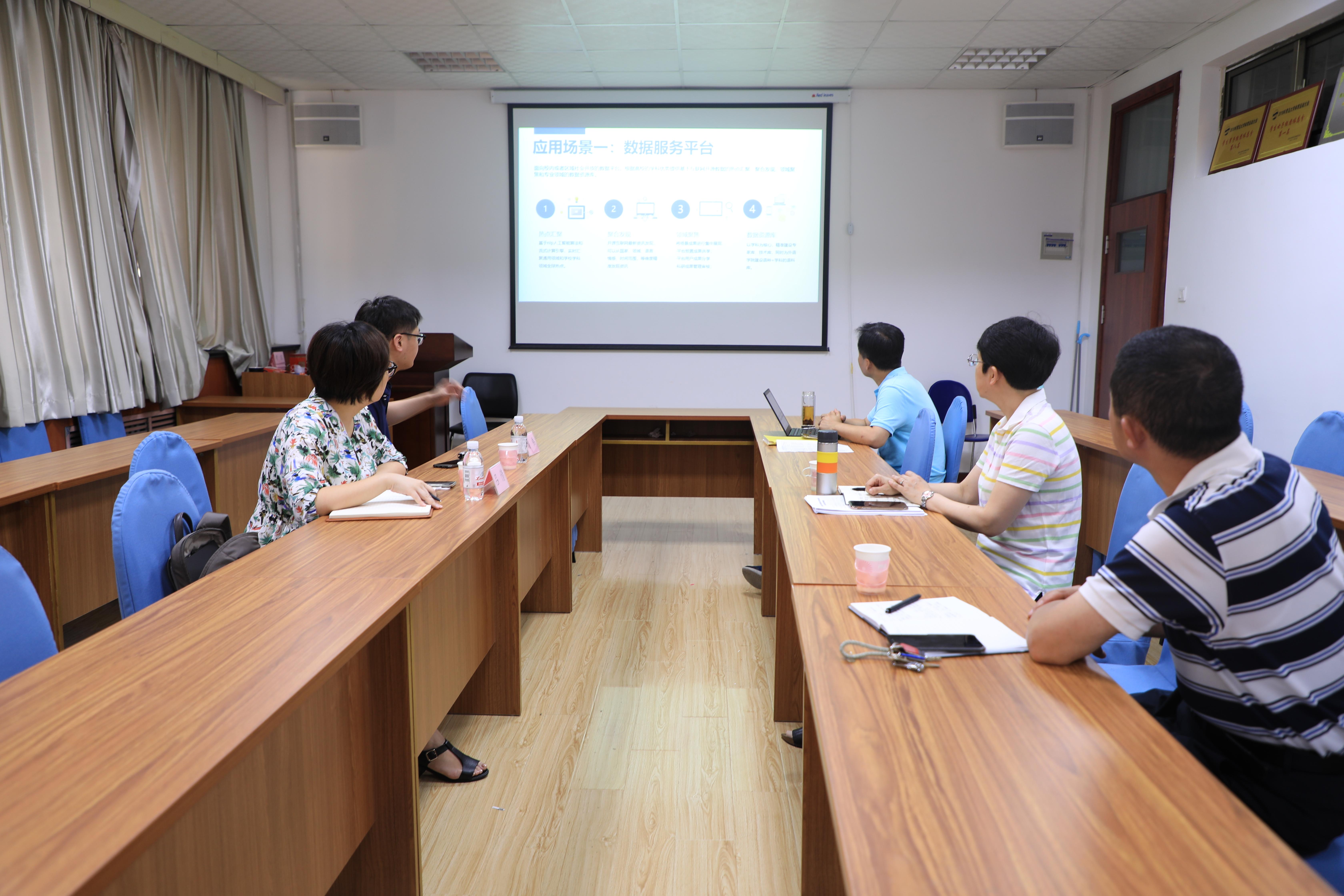 双方就“高校跨语言大数据科研创新实验平台建设”进行了深入交流。首先,中译语通潘伟经理对平台功能、架构、建设、应用场景等方面进行了较为全面的介绍。接下来,双方就实验室平台的软硬件建设、数据采集和使用、教学应用场景、科研应用场景等具体问题进行细致的探讨。