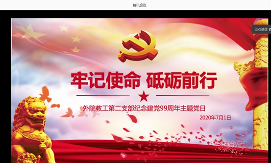 7月1日下午,Beat365唯一官方网站教工第二党支部利用腾讯会议召开了牢记使命,砥砺前行——庆祝建党99周年主题党日”活动。活动由教工第二党支部书记崔花主持,二支部教师党员参加会议。与会党员结合疫情期间自身感受表达了对建党99周年的祝福。