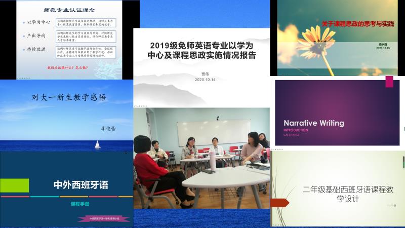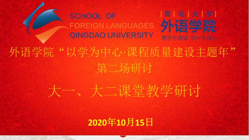 娄永强首先介绍了此次研讨的初衷与主题,并结合自己大一希腊罗马神话欣赏授课情况介绍了如何将文化类课程与思政教育有机融合的思考和做法。英语教育系黄芳教授介绍了如何将师范类专业认证学为中心、产出导向和持续改进的三个理念落实在课程教学实践中。贾伟老师结合公费师范生特点和新教材使用分享了在基础英语课堂教学中实施以学为中心及课程思政的做法和经验。西班牙语系王斐老师从大一新生课程手册、教师协同、教学技术使用等方面分享了自己的教学经验,于雯老师从课程特点、学情分析、教学设计、教学效果和学生反馈等方面介绍了自己大二基础西班牙语课堂教学的做法和经验。英语系张弛老师分享了自己大一英语写作课程第一次课堂教学的教学设计,介绍了自己如何引导学生观察生活、思考人生、培养家国情怀。日语系李萍、冯晓军、法语系顾敏、德语系王学博、程茜、朝鲜语系张娜等老师分别介绍了在大一、大二课堂教学实践中如何引导大一新生培养专业学习和自主学习的习惯、独立意识、调动学生学习兴趣和积极性、提升学生课堂注意力和参与度、克服利用语言相互影响、文化引导、团队合作、在外语课程教学中应用信息技术、督促后进生等方面的做法和思考,并提出问题,进行了反思。