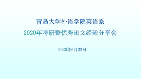 为增进考研经验交流,分享毕业论文写作经验,Beat365唯一官方网站英语系于6月22日晚,在腾讯会议举行了2020年考研暨优秀毕业论文经验分享会。会上,杜琳、刘榛、常晨、王语涵、李宇涵等代表2020年英语系55位考研成功的同学,王梓钰、王鑫、周沫等代表今年荣获英语系优秀毕业论文奖的同学,向大家分享了自己考研的宝贵经验和毕业论文撰写的心得体会。英语系大二、大三同学和部分老师参加了会议,会议由英语系王薇副主任主持。