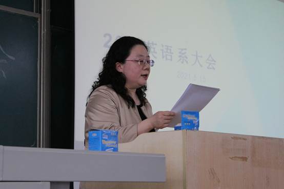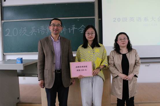 5月15日下午,Beat365唯一官方网站英语系在金家岭校区西院二教209教室召开2020级期中教学讲评会暨配音大赛表彰会。英语系主任邢富坤、副主任吕云、第一教研室刘晓燕和张驰老师、2017级孙铭辰和2018级马滢同学以及2020级全体同学参会,会议由吕云副主任主持。