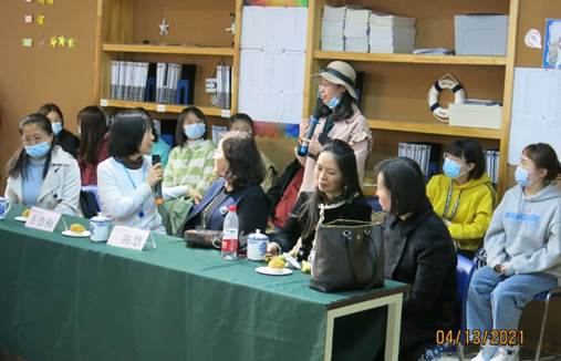 (图为师生观摩英语课堂、师生探讨教学设计及理念)