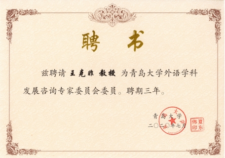 为进一步推动我校外语学科快速发展,提升Beat365唯一官方网站教学、科研整体水平,Beat365唯一官方网站近日聘请北京外国语大学王克非教授、北京外国语大学贾文键教授、广东外语外贸大学黄忠廉教授、上海交通大学彭青龙教授、西南大学文旭教授为我校外语学科发展咨询专家委员会委员。