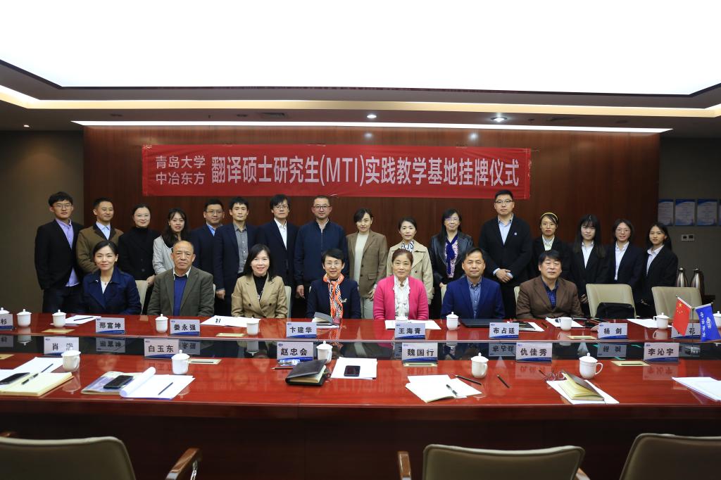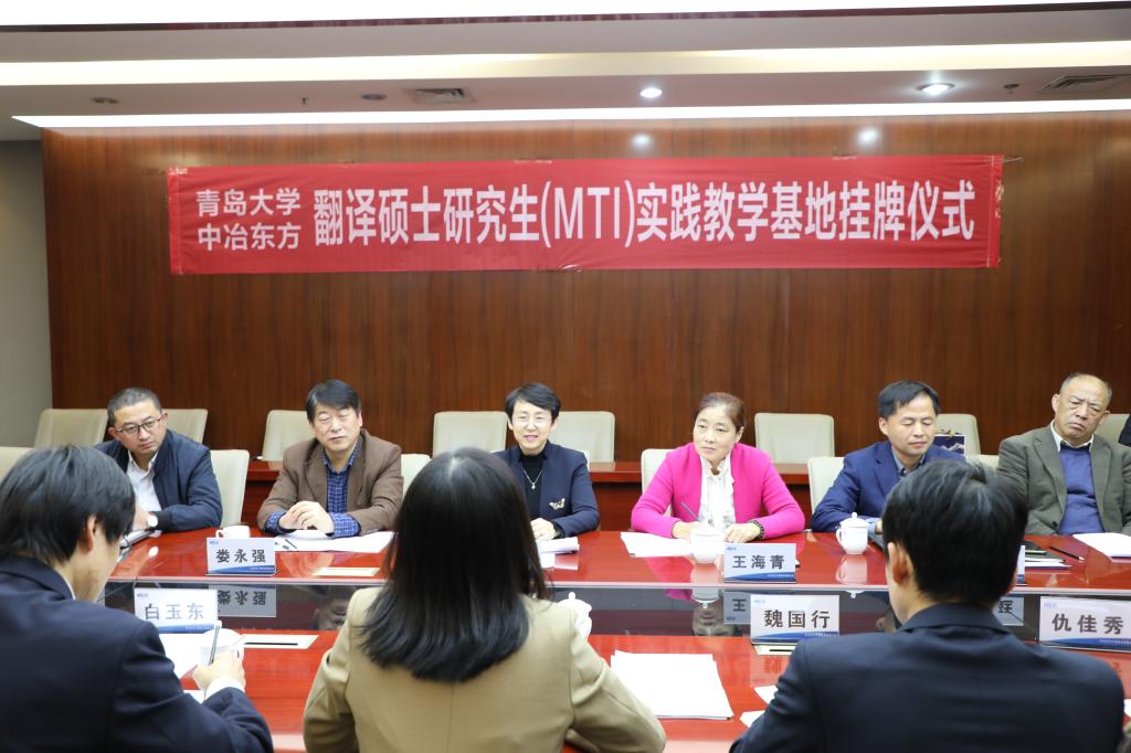 10月22日下午,Beat365唯一官方网站与中冶东方工程技术有限公司(以下简称中冶东方公司)翻译中心MTI实践教学基地揭牌仪式在西海岸新区中冶东方大厦举行。院长卞建华、党委副书记王海青、副院长布占廷、娄永强、院长助理曹杉和各教学系代表参加了仪式。仪式由中冶东方公司翻译中心主任、Beat365官网校外兼职导师赵忠会主持。
