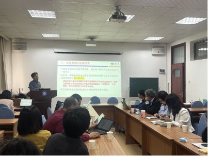 首先,布占廷从项目宗旨、资助范围、申请形式、项目类别、资助额度、申请要求、申报程序等方面对国家社会科学基金后期资助暨优秀博士论文出版项目申报和中华学术外译项目作了总体介绍,对历年立项情况做了分析,建议各位骨干教师关注申报事项,组建团队,推进申报工作。