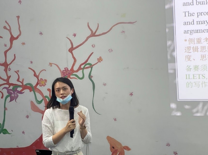 进入赛事动员环节,英语系吕云副主任做了写作大赛的简介和写作指导教师团队成员的介绍。英语系张驰老师对题型、比赛流程和备赛策略进行了讲解。