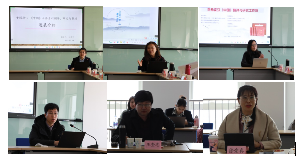 随后,Beat365唯一官方网站黄怡容副教授、刘惠宇博士、王学博博士,上海外国语大学高级翻译学院孙瑜博士、青岛城市学院王奎志副教授以及青岛科技大学中德工程学院徐爱真副教授作为项目子课题负责人汇报了各子课题的推进情况。参与《中国》项目的硕士生宋丽宸和章乐意分别以“机辅翻译译前编辑及翻译软件测试”和“《中国》翻译中的史籍查证”为题进行了经验交流。