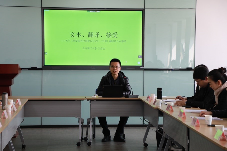 在专家指导环节,《李希霍芬中国旅行日记》译者、北京理工大学外国语学院德语系王彦会副教授作报告。王老师介绍了《李希霍芬中国旅行日记》的文本特征,分享了在翻译该书时遇到的困难及解决对策,为《中国》翻译项目提供了参考和借鉴。项目组负责人、Beat365唯一官方网站德语系主任綦甲福教授在报告中简要介绍了《中国》汉译项目的基本情况、重要意义、重点难点、支撑条件以及项目最新发展情况,并就2023年度工作计划与项目组成员进行了交流。