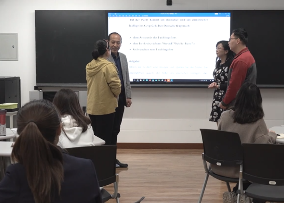 “跨文化口译实践II”是德语专业高年级主干课程之一,主讲教师为刘沁卉。该课程面向本科三年级下学期的同学开设,旨在提升学生跨文化能力,同步推进口译各项子能力发展,有效提高学生中德口译水平。口译工作不仅仅是双语转换,沟通协调能力、跨文化思辨能力等同样非常重要。因此,德语专业在2017版人才培养方案中,将原“德语口译”课程调整为“跨文化口译实践”,同时围绕如何解决传统口译课的课堂效率、学习体验等问题展开相关教改教研。经过长达 6 年的探索和实践,课程形成了“跨文化培养”和“沉浸式体验”这两大鲜明特色,课程设计与实施贯穿“以学为中心”理念,其翻转课堂的运用、“双师课堂”和“三个对应”等做法赢得了学生的认可和专家的肯定。
