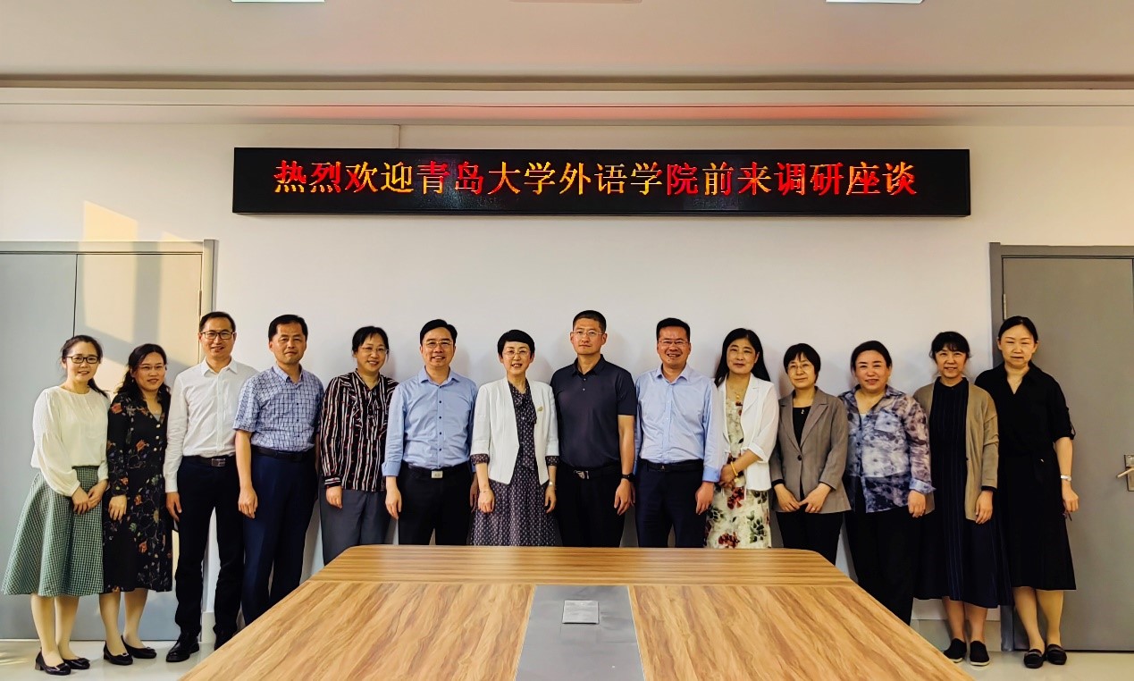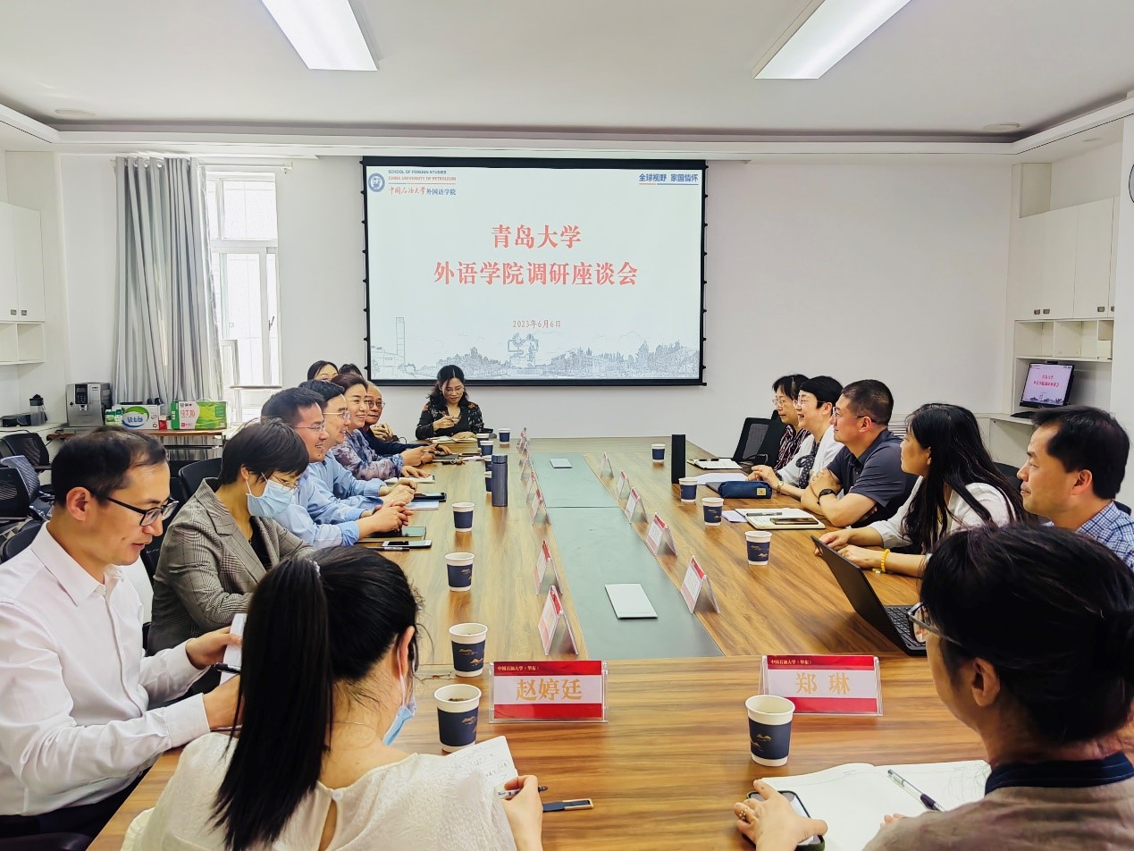 6月5日,Beat365唯一官方网站一行五人赴中国石油大学(华东)外国语学院调研,参加调研的有卞建华院长、周伟书记、王海青副书记、宫英瑞副院长和布占廷副院长。中国石油大学(华东)外国语学院毛浩然院长、朱惠平书记、邹维忠副书记、孙大满副院长、郭月琴副院长、张建科副院长等参加调研座谈。