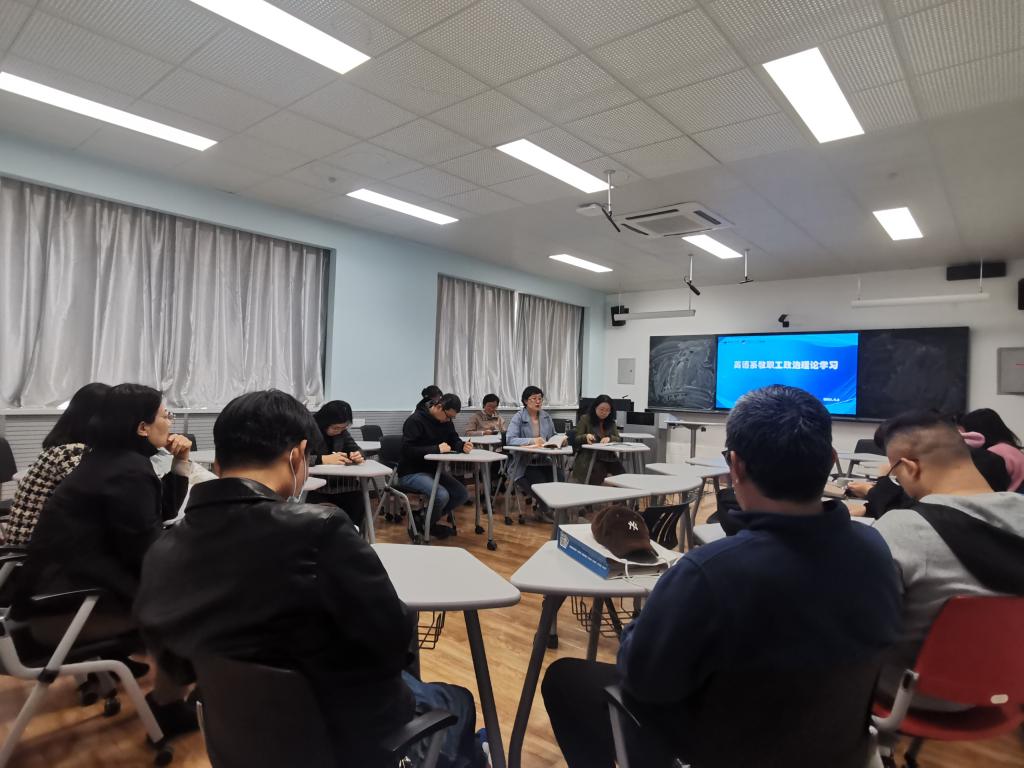 会议伊始,全体老师在英语系副主任王薇老师的带领下进行教职工政治理论学习,以党的二十大报告中的教育指导思想为主要内容,共同领会了“教育、科技、人才是全面建设社会主义现代会国家的基础性、战略性支撑”和“培养什么人、怎样培养人、为谁培养人是教育的根本问题”等党的二十大报告中教育的重要论述,为每位教职工的教学科研工作指引了明确方向。