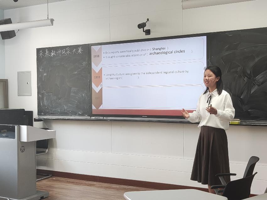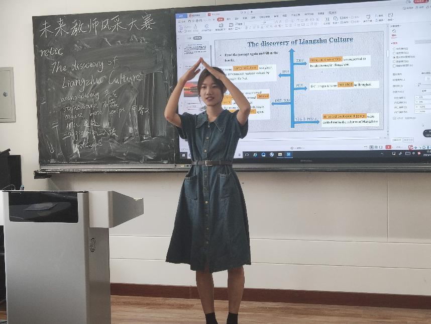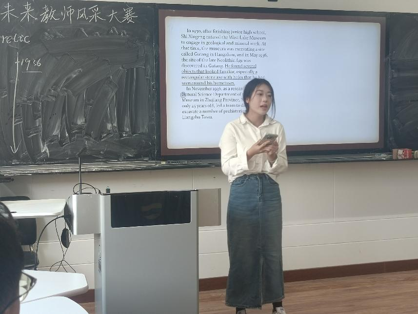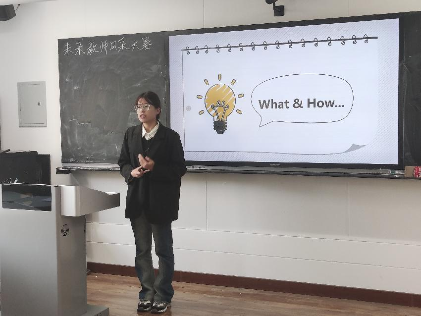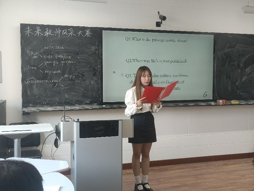 按照比赛要求,选手围绕赛题展开10分钟的真实课堂教学+3分钟的与英语相关的才艺展示。在教学过程中,参赛选手丰神异彩,教态自然。教学设计丰富多元,教学风格各具特色。设计用提出问题的方式引导学生的思考,体现以学生为中心的教学理念。才艺展示环节选手们大展身手,从声情并茂的朗诵,到悦耳动听的歌曲;从生动有趣的简笔画,到活泼明快的舞蹈,展示了英语教育系学生的综合素质能力。
