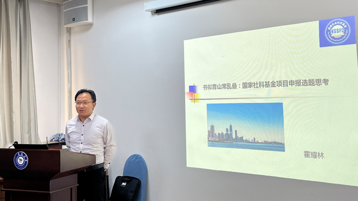 霍耀林副教授结合自己的申报和研究经验,讲述了项目选择的五大宗旨,指出课题申报研究要立足党和国家事业发展需要,同时强调了选题要顶天立地,要关注前沿。最后霍耀林副教授提出要踊跃申报,不错过任何申报的机会。