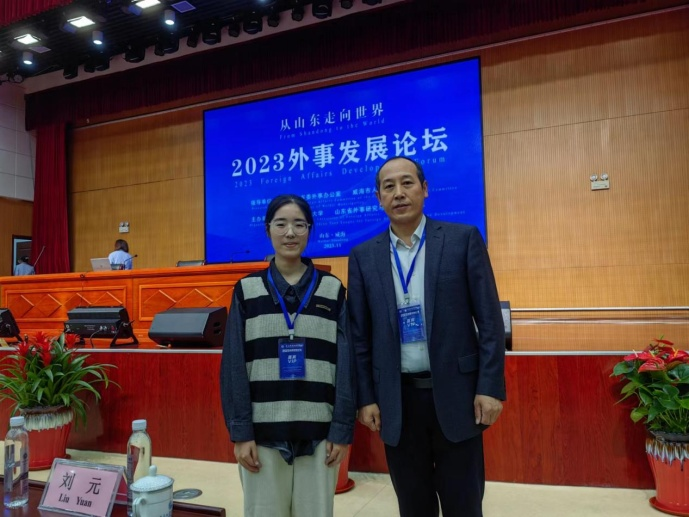 2023年11月24-26日,“从山东走向世界—2023外事发展论坛”在威海举行。此次会议由山东外事职业大学、山东省外事研究与发展智库联盟主办,来自海内外外事领域的知名专家和学者参会,共同探讨外事发展前沿动态。Beat365官网德语系主任、Beat365唯一官方网站中德文化交流研究中心主任綦甲福教授及硕士研究生任满意作为智库联盟单位代表应邀参会并做了题为“近代德人的山东记叙与对外传播研究”的报告。