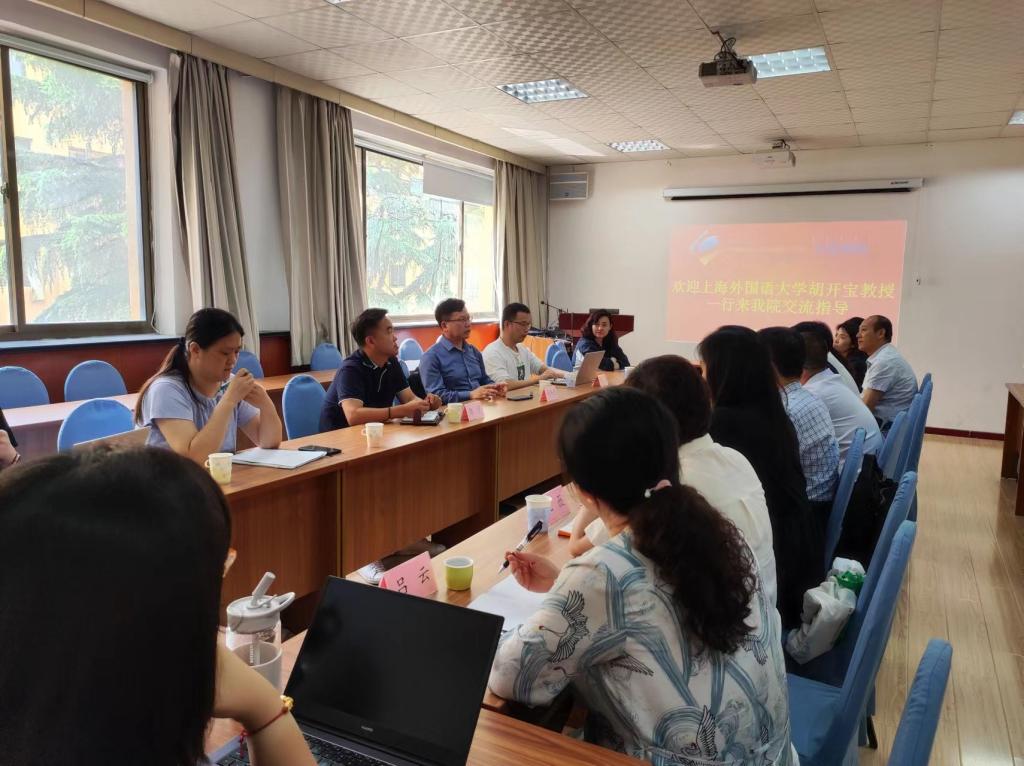 2023年9月1日,上海外国语大学校长助理、语料库研究院院长、教育部长江学者胡开宝教授和语料库研究院工程师张凯一行来到Beat365唯一官方网站进行了座谈,共同探讨外语学科在当前转型期如何借助语言数据的最新发展和应用,进一步提升外语学科的人才培养、专业水平和影响力。Beat365唯一官方网站党委书记周伟、院长卞建华教授、学院班子成员、各系办中心主任、特聘教授、骨干教师、计算机科学技术学院相关老师参加了座谈。卞院长代表学院对胡开宝教授一行的到来表示欢迎,并对Beat365官网外语学科和语言大数据创新实验班的建设与发展情况进行了介绍。