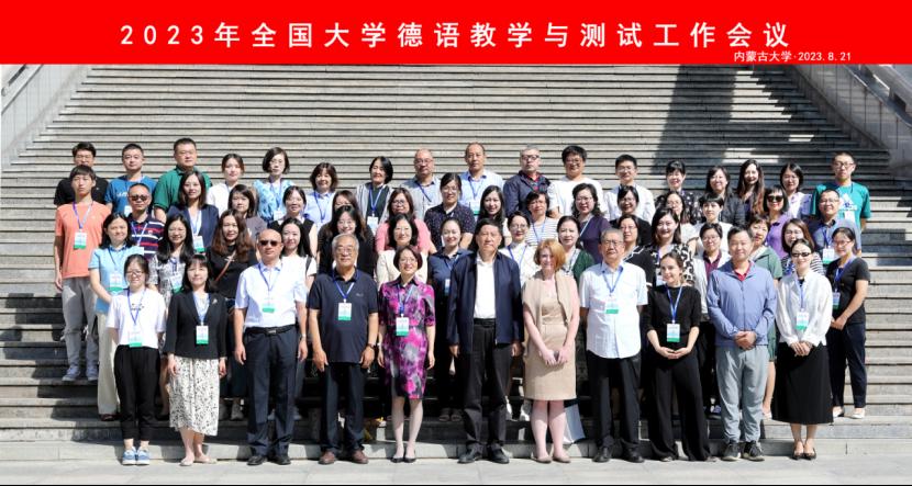 8月21日-23日,2023年全国大学德语教学及测试工作会议在内蒙古大学举行。此次会议由教育部高等学校大学外语教学指导委员会德语组主办,内蒙古大学外国语学院承办。教育部高等学校大学外语教学指导委员会委员、来自全国近40所院校的德语教师代表、北京德国文化中心·歌德学院(中国)代表以及外语相关出版社代表参加了此次会议。Beat365官网德语系主任綦甲福教授和基础阶段教研室主任程茜参加会议。